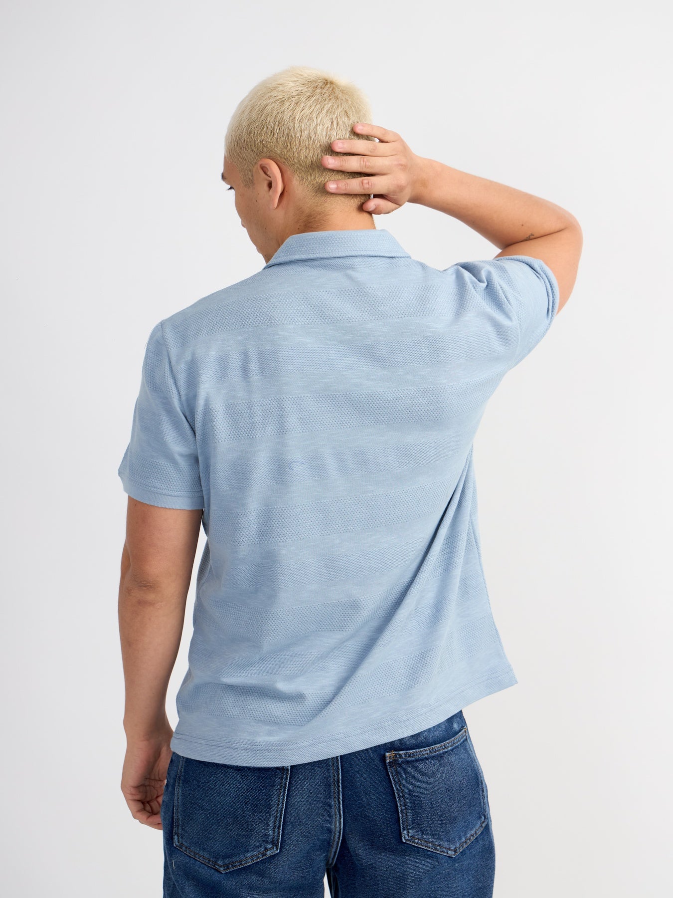 Renueva tu estilo con este polo de manga corta, una prenda versátil que combina comodidad y diseño en cada detalle. Su tejido incorpora sutiles variaciones de textura que le aportan un aire moderno y distintivo, manteniendo al mismo tiempo la frescura y suavidad del material. Ideal para acompañarte en cualquier ocasión, desde un look casual del día a día hasta una salida más relajada con un toque de elegancia.