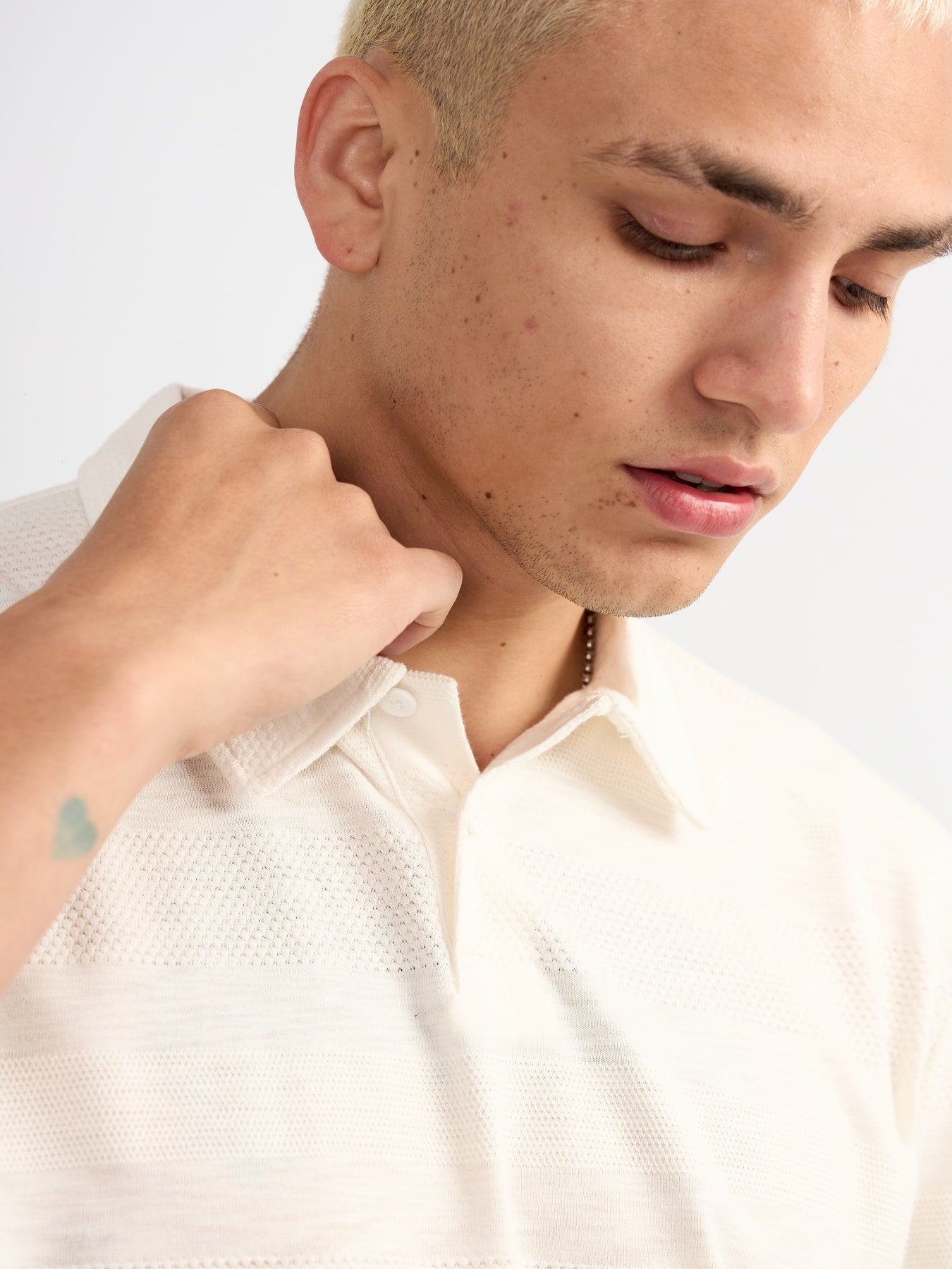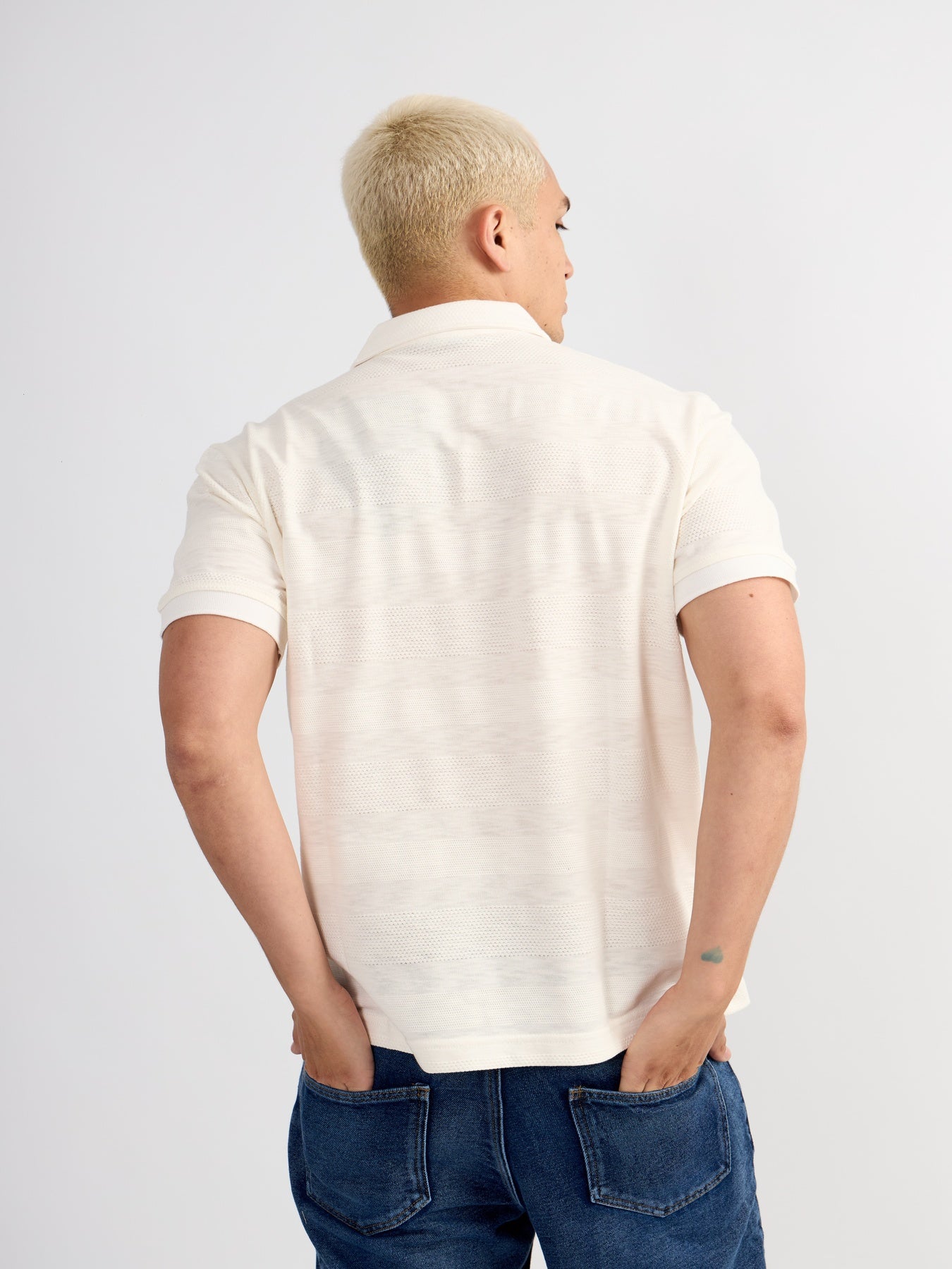 Renueva tu estilo con este polo de manga corta, una prenda versátil que combina comodidad y diseño en cada detalle. Su tejido incorpora sutiles variaciones de textura que le aportan un aire moderno y distintivo, manteniendo al mismo tiempo la frescura y suavidad del material. Ideal para acompañarte en cualquier ocasión, desde un look casual del día a día hasta una salida más relajada con un toque de elegancia.